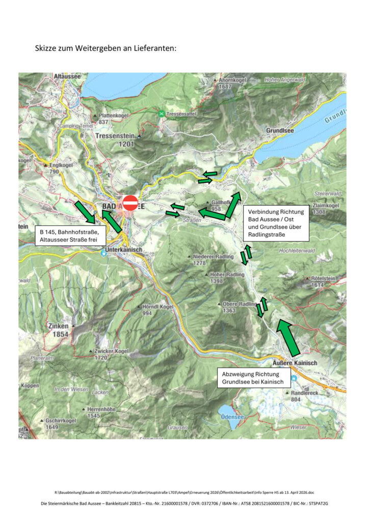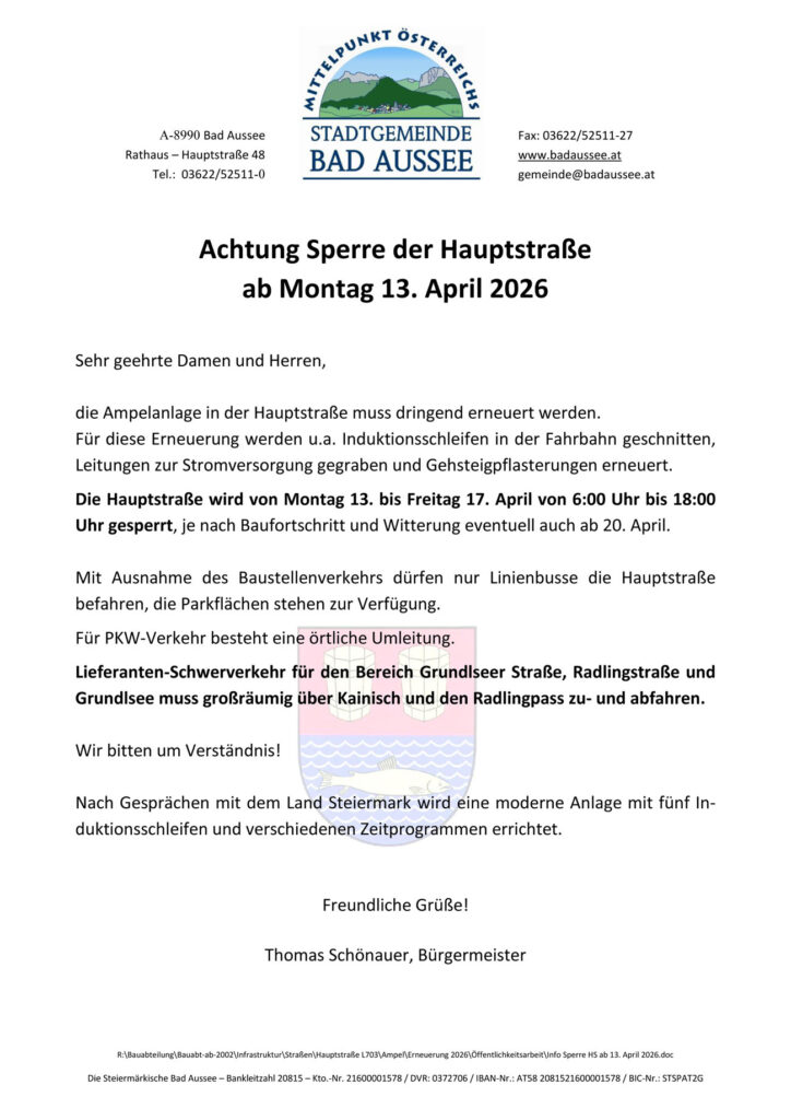 Sperre Hauptstrasse Bad Aussee ab 13. April