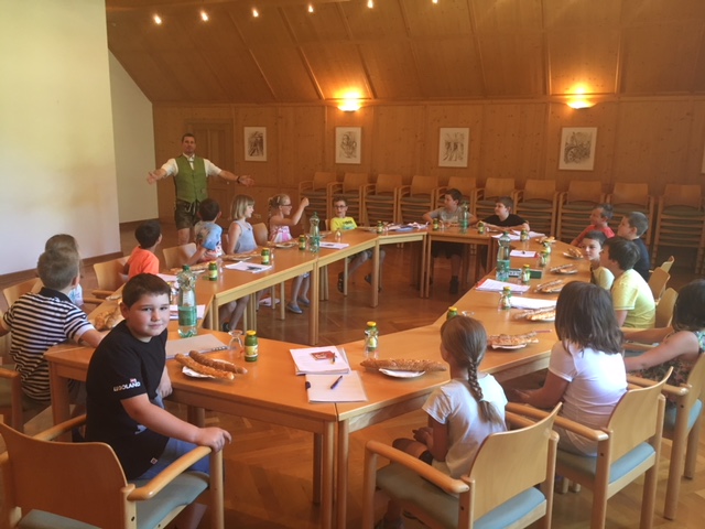Im großen Sitzungssaal konnten sich die Kinder schließlich in großer Runde stärken - vielleicht war sogar der eine oder andere künftige Gemeinderat dabei? J